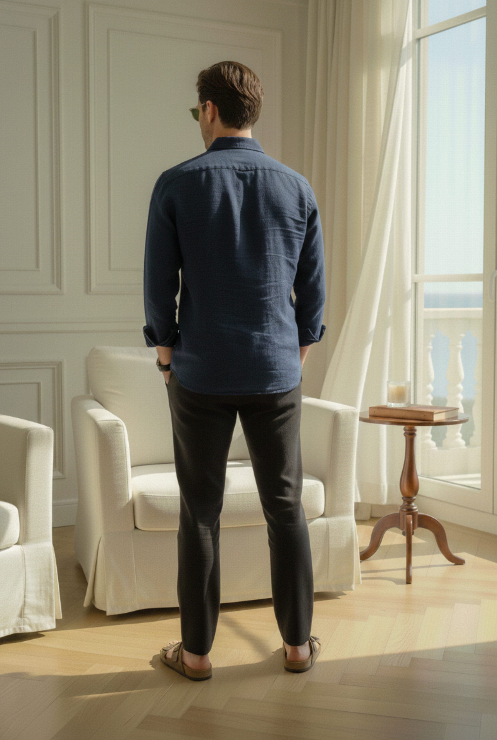 Our Duos are tailored for a sharp, clean silhouette without sacrificing comfort.Crafted with an intentional Mediterranean drape, our Signature Duos feature an oversized shirt silhouette and relaxed-fit trousers. Our Lotus Linen is pre-washed for a soft, lived-in feel from day one. Since these garments are already designed for a generous, airy fit, we recommend staying true to your standard size to achieve the intended legendary look.